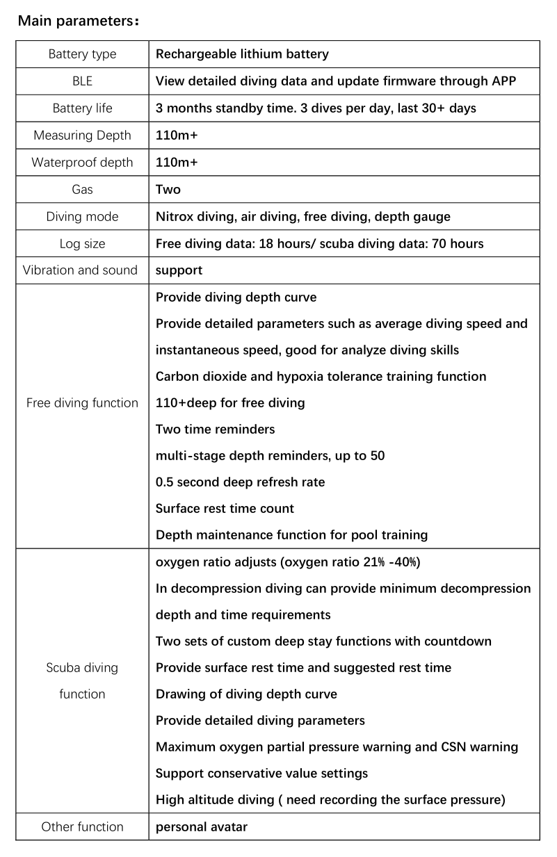 Due to numerous factors can affecting diving safety and potential damage to the watches, our diving computer products cannot provide any legal guarantee for your diving safety.